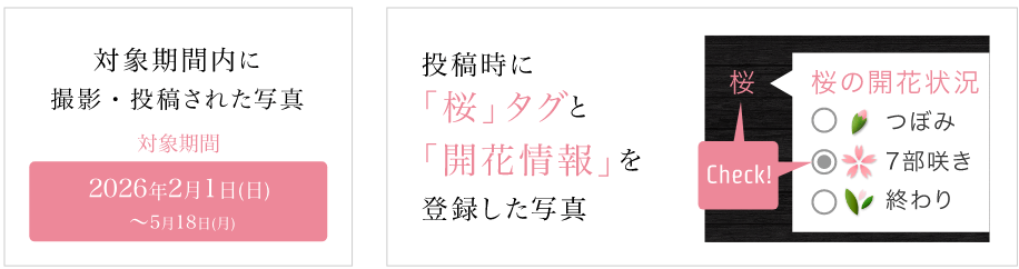 ・投稿時に「桜」タグと「桜の開花情報」を登録したもの